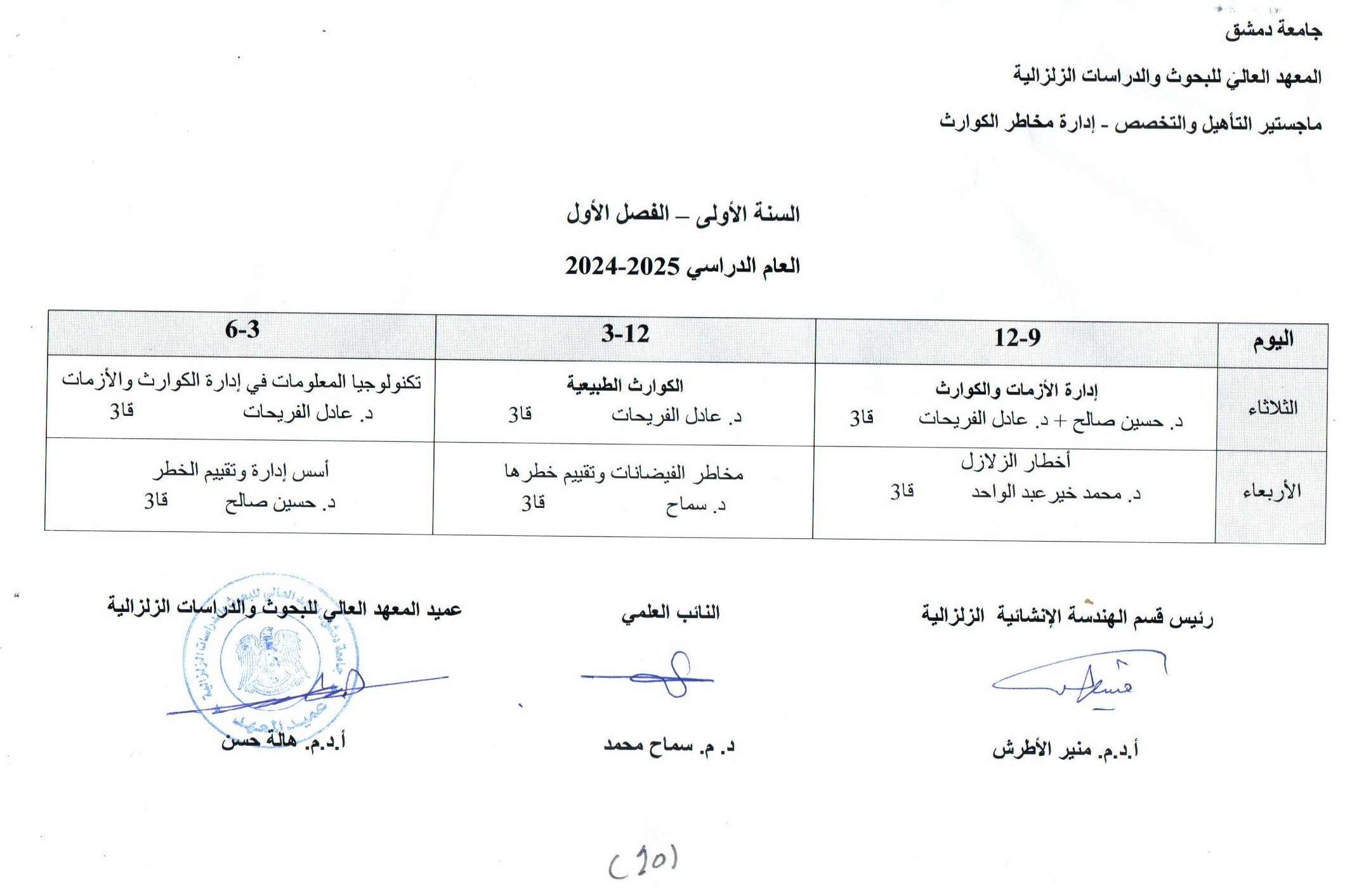 | • برنامج ماجستير تأهيل و تخصص هندسة زلزالية السنة الأولى- الفصل الأول |