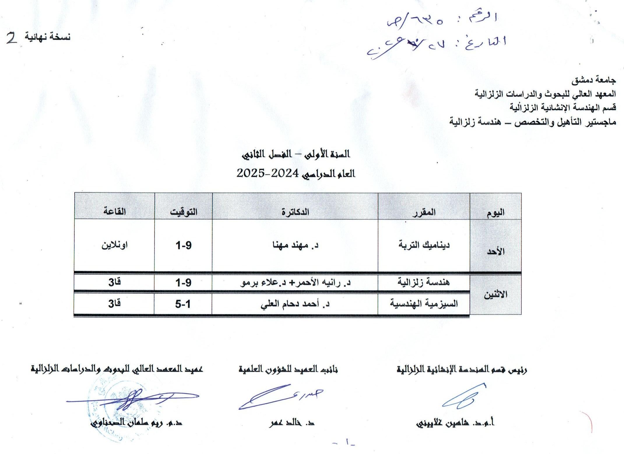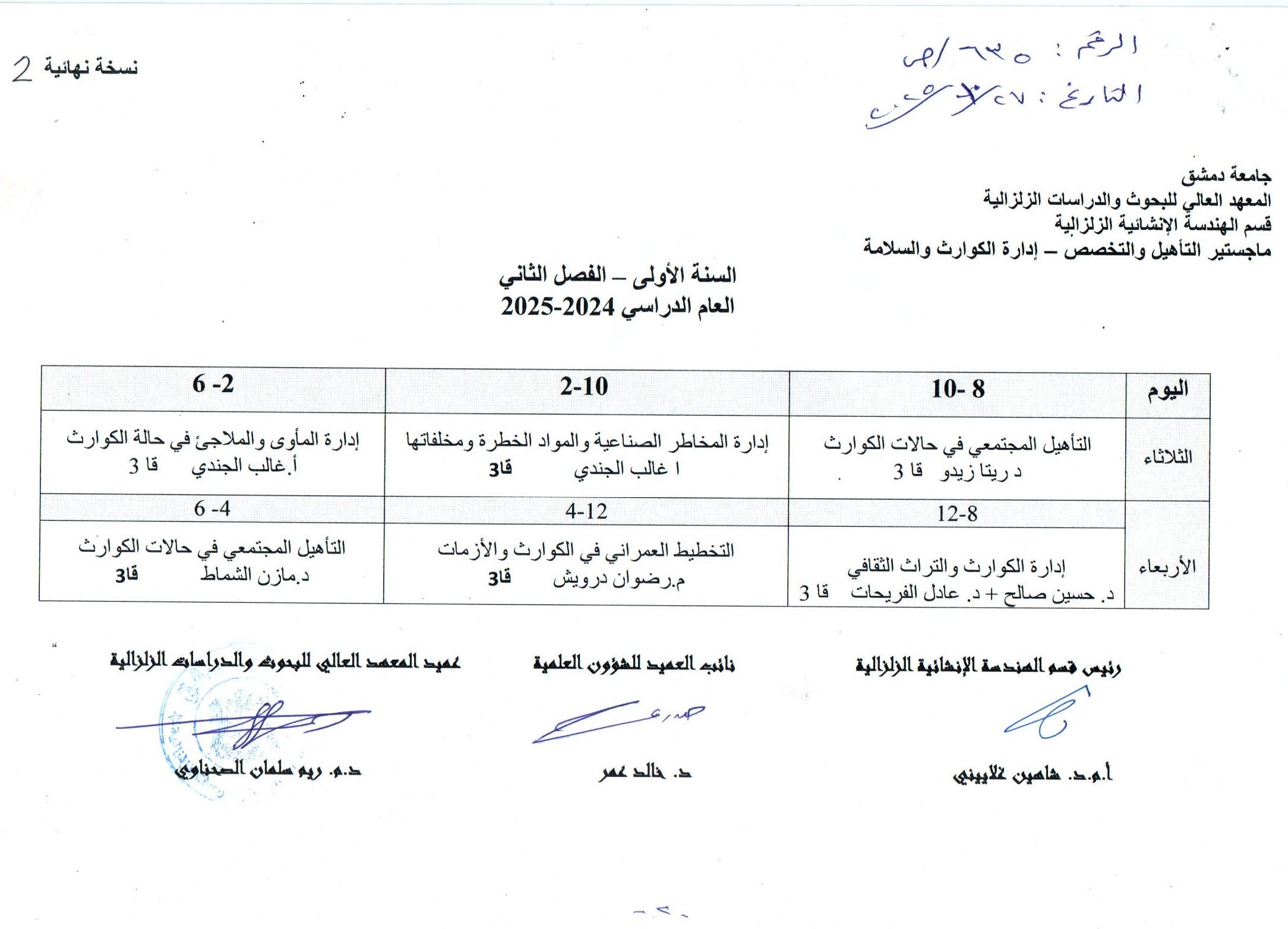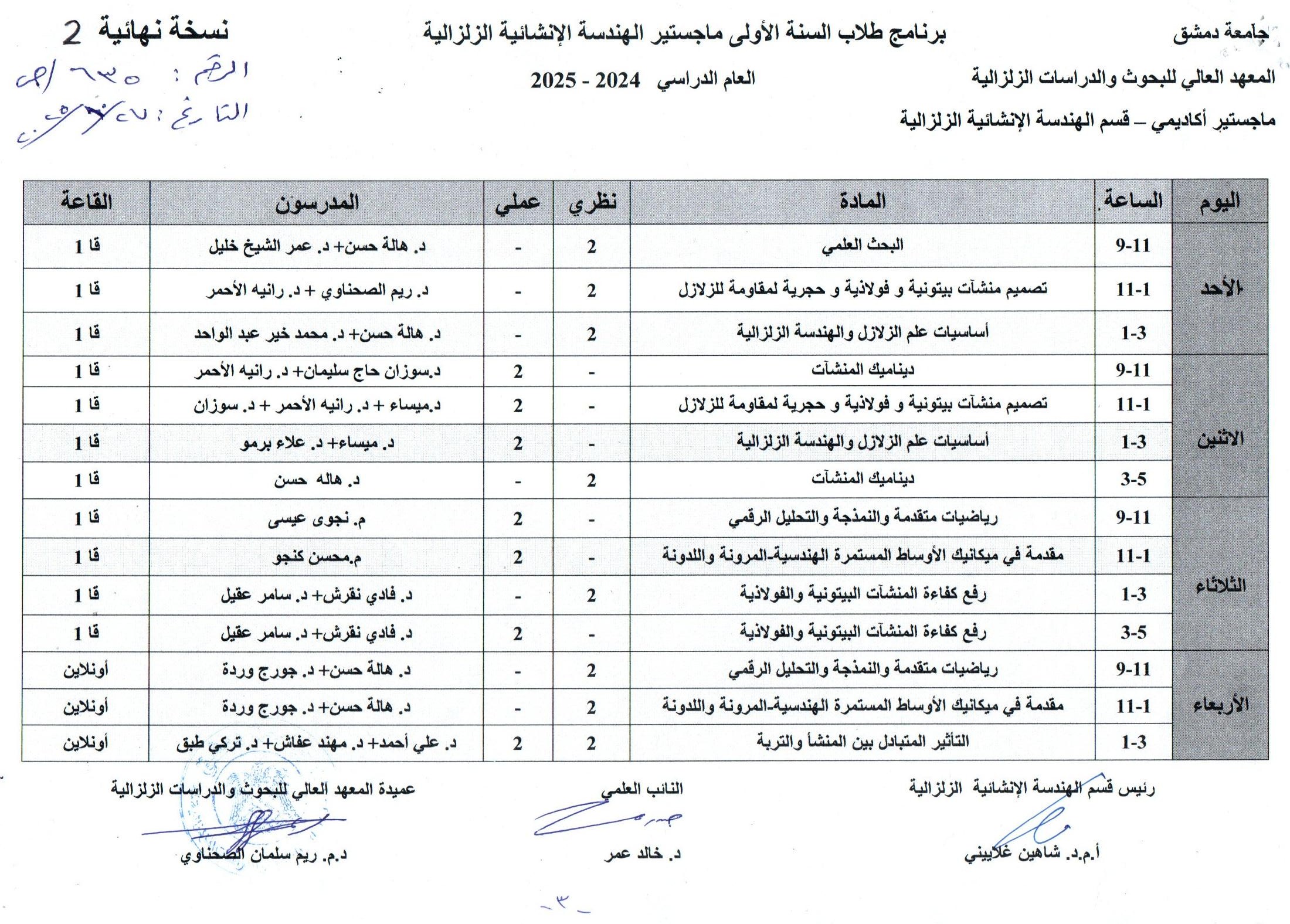 | • برنامج ماجستير تأهيل و تخصص هندسة زلزالية فصل 1سنة 2 |