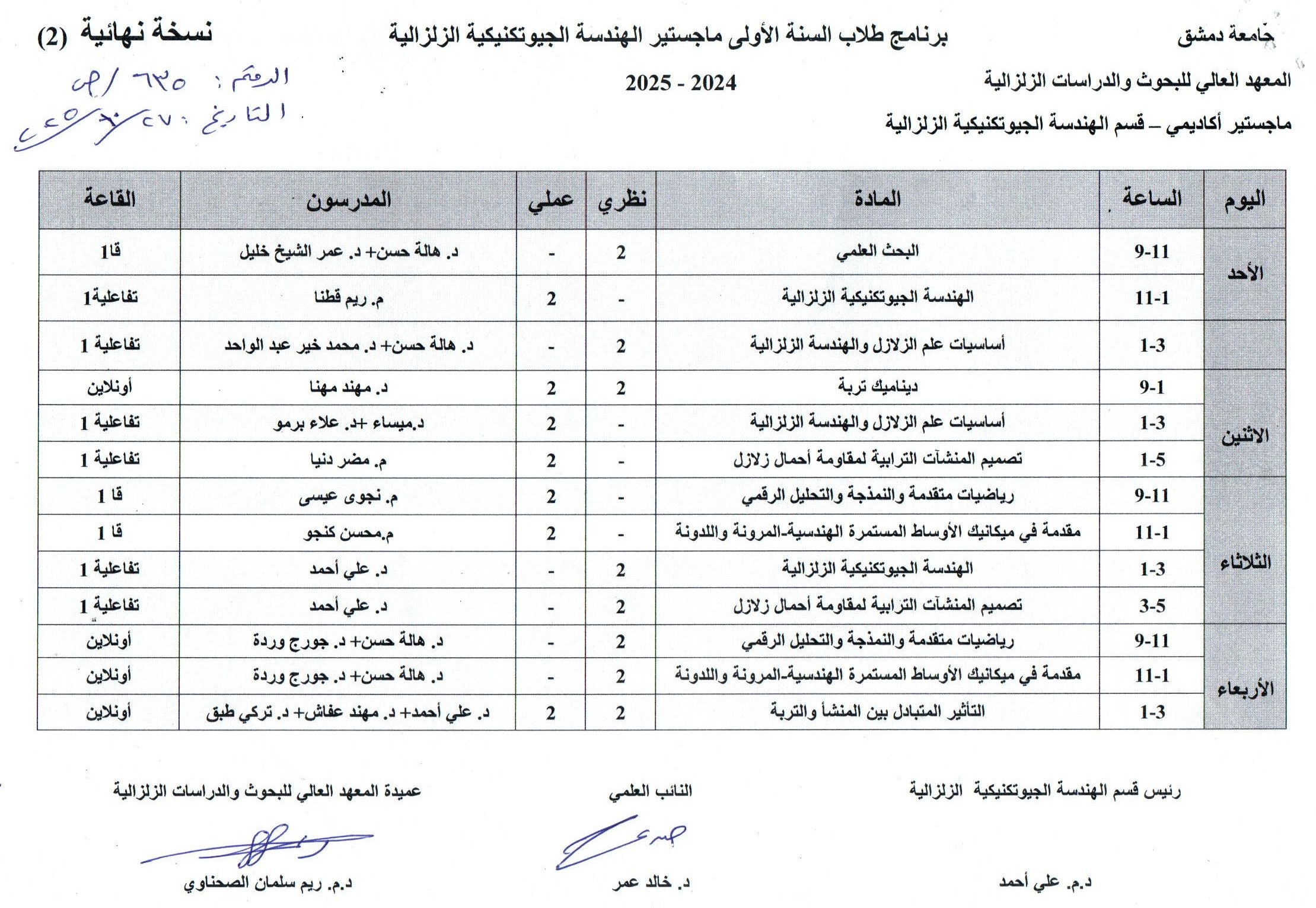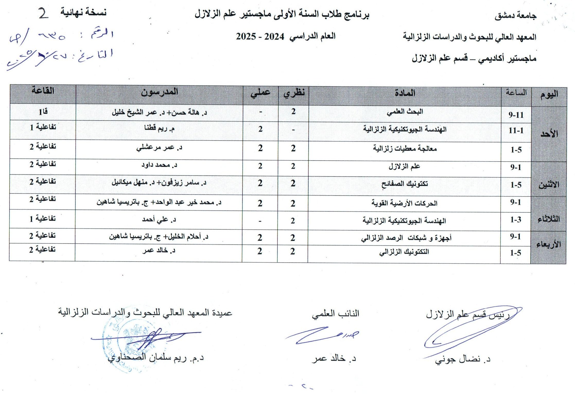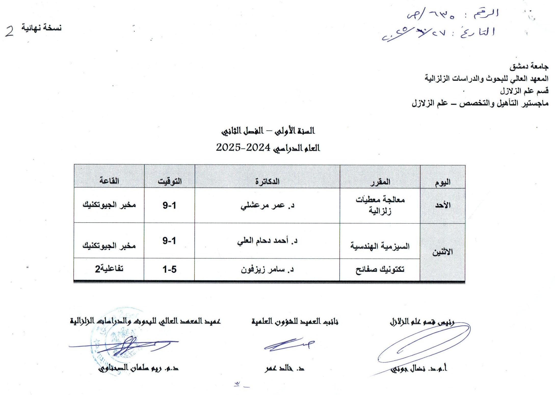 | • برنامج ماجستير تأهيل و تخصص علم الزلازل فصل 1 سنة 2 |