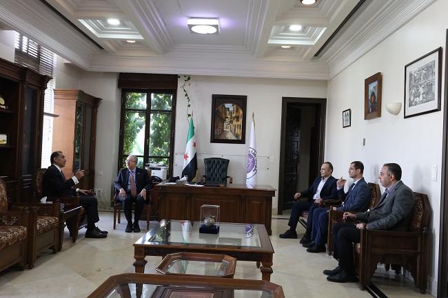 The President of Damascus University, Professor Dr. Mustafa Sa'em Al-Dahr, met with the Ambassador of the Hashemite Kingdom of Jordan in Damascus, Mr. Sufyan Salman Al-Qudah, to explore avenues to strengthen and activate academic, scientific, and cultural cooperation between Damascus University and Jordanian universities.
