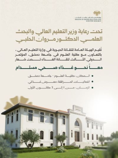 العلوم بجامعة دمشق وبمشاركة نخبة من الباحثين والخبراء والأكاديميين من سوريا والوطن العربي