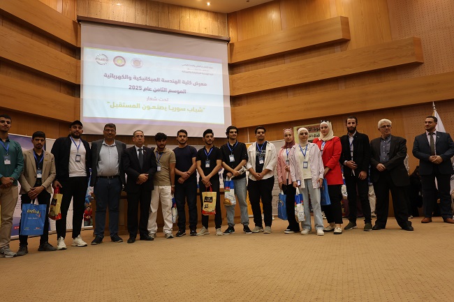 اختُتمت اليوم فعاليات المعرض السنوي الثامن لمشاريع التخرج الذي أقامته كلية الهندسة الميكانيكية والكهربائية بجامعة دمشق تحت شعار "شباب سوريا يصنعون المستقبل"، بمشاركة واسعة من الجامعات السورية الحكومية والخاصة، وبحضور أساتذة وطلاب وممثلين عن الهيئات الأكاديمية والصناعية.