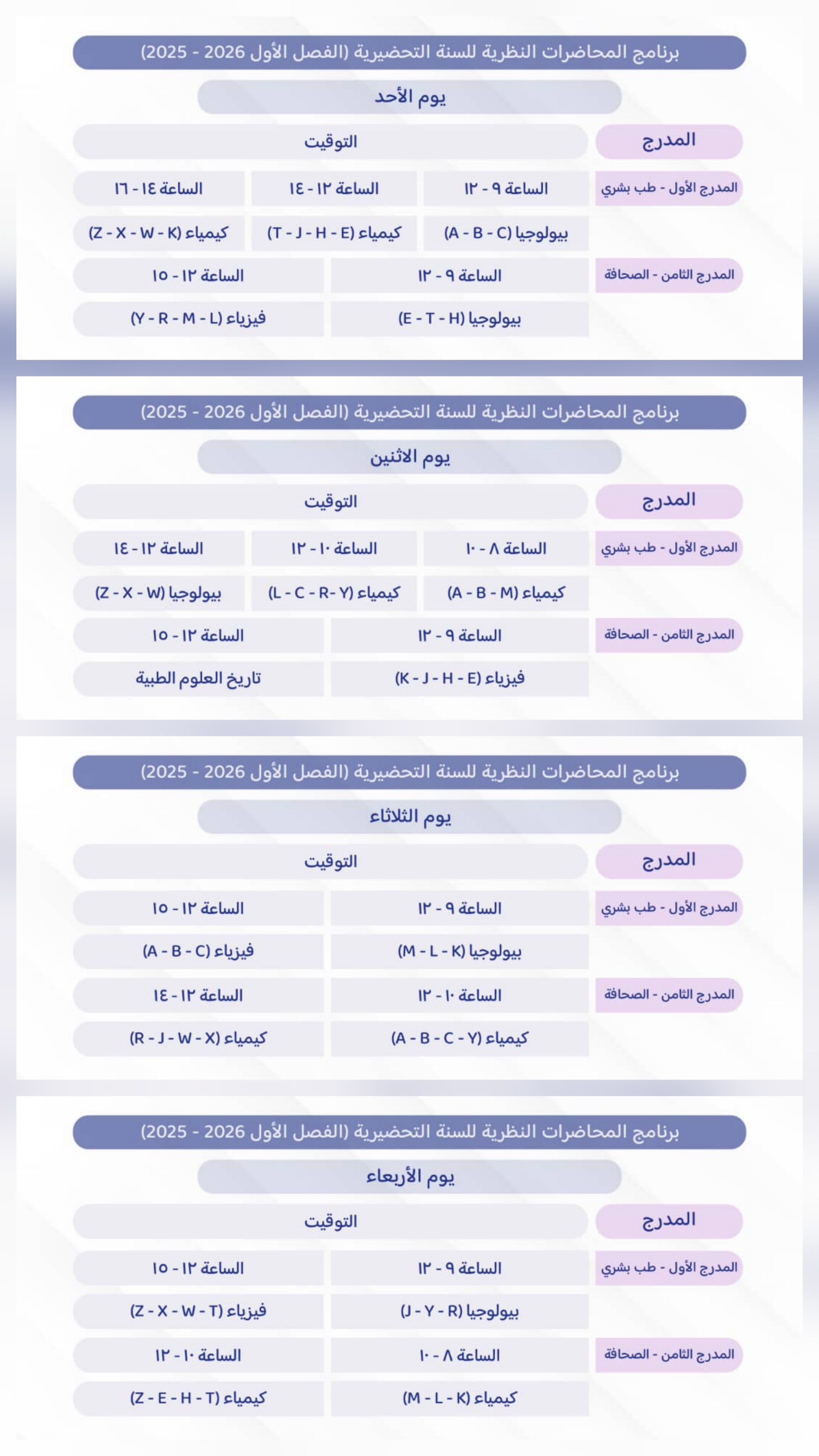 قوائم توزيع الطلاب على الفئات النظري والعملي 2025-2026